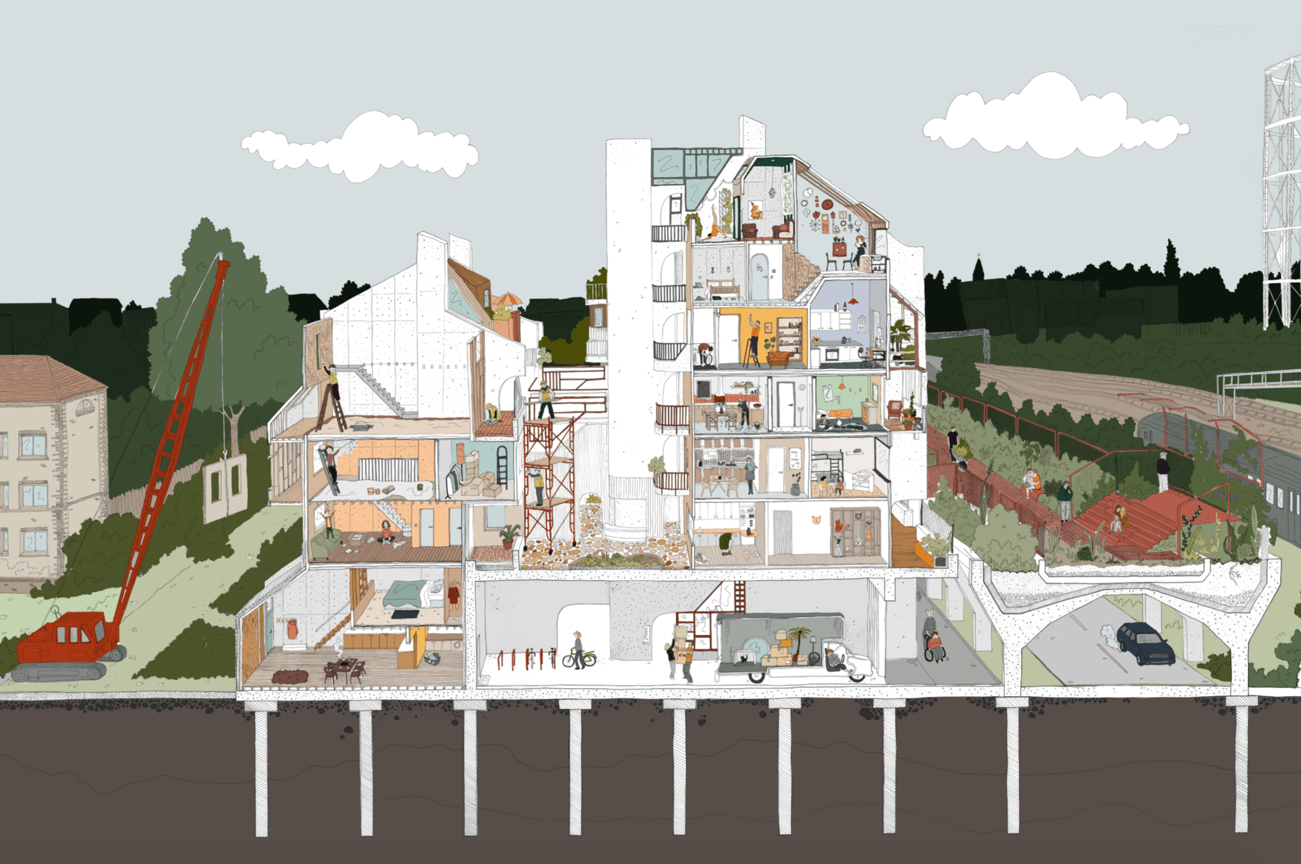 Dalgarno Builds looks at how architects can design for the participation of users and can empower communities to become the drivers of their own developments. Through interrogating the party wall was as an enabling architectural device for both division and connection, the housing market on this site is opened up to allow for a diversity of users to contribute to building the homes that Londoners need and want.