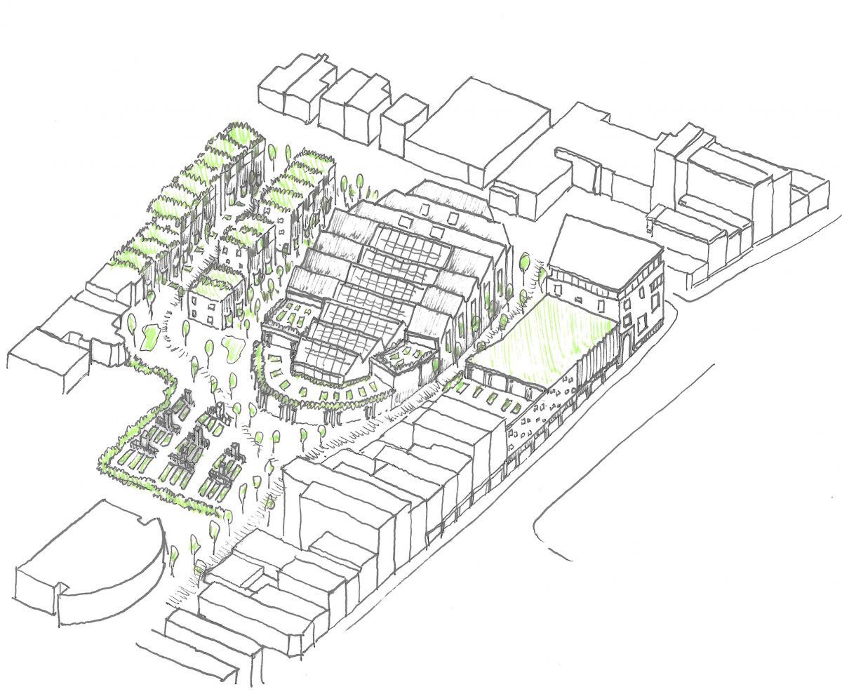 The project will create a new collection of buildings including a school, community building and housing, linked by a series of interwoven landscapes, that will serve a wide sector of society with a food and agricultural based programme. The school will sit as the centrepiece of the sensitively designed masterplan, as a pristine and crystalline object in a hazy and varied landscape. The buildings will be linked by a variating garden wall.