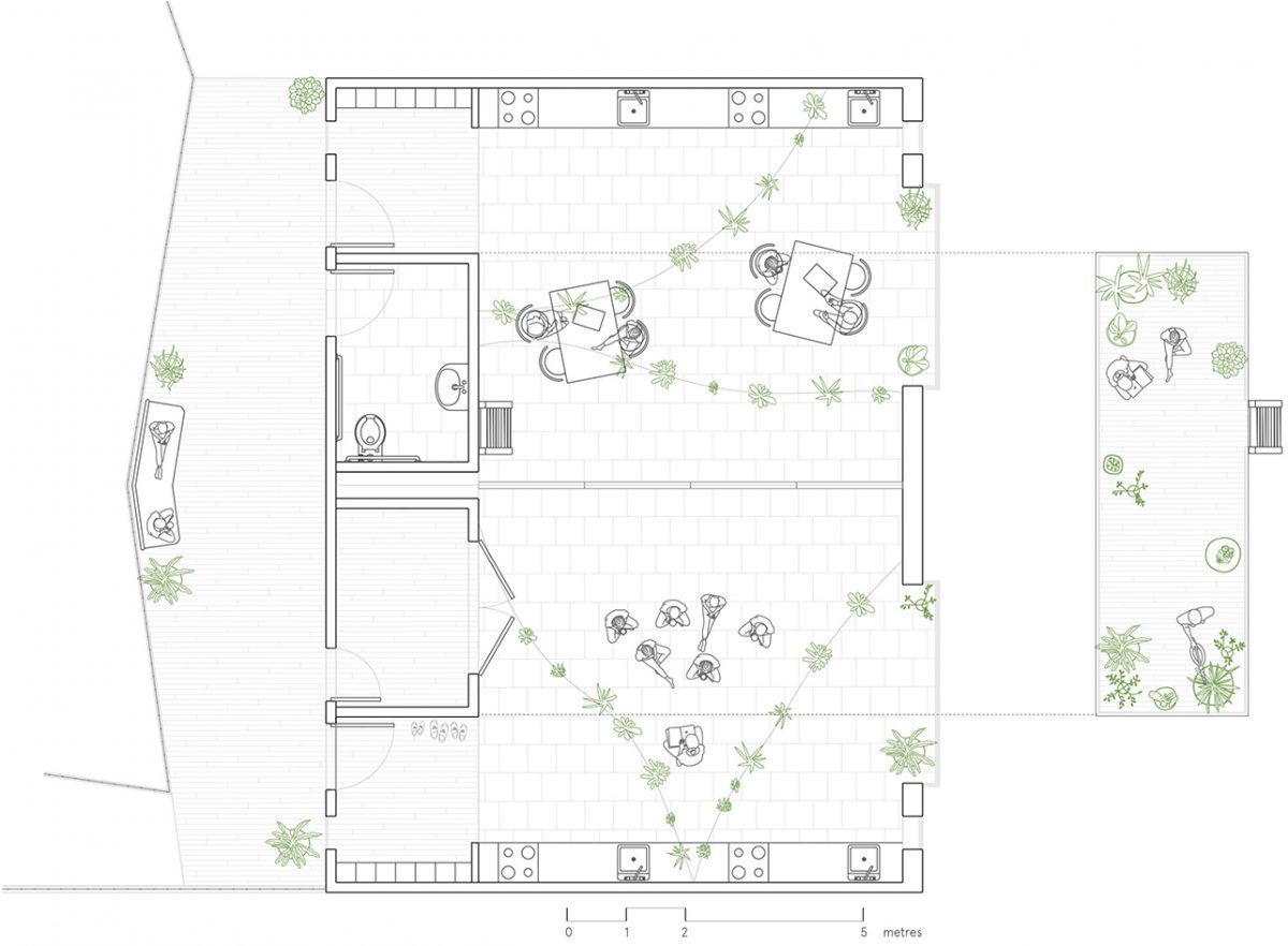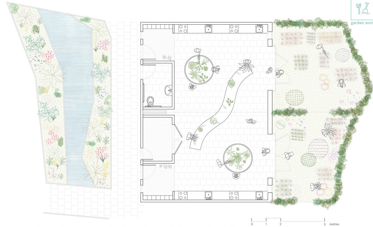 The classroom modules on the ground floor have a unique and direct connection to the external kitchen gardens and to the internal garden.