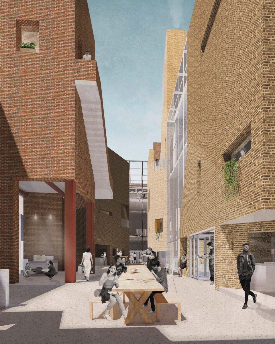 The towers give way to a central outdoor courtyard; a communal area into which activity spills from the surrounding cooking spaces, allowing groups to converge and culture to be shared.