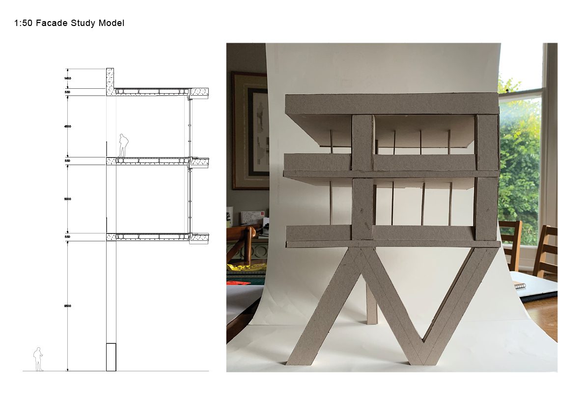 The design intent of the load-bearing precast concrete structure is to establish it’s heavy and rigid presence, whilst retaining a sense of openness into the building.