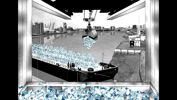 The building’s structure is divided into three areas related to plastic recycling, cultivation of mycelium and brick production, which together form a continuous, closed-loop system. The size of interior spaces is based upon a module of 1000 kg of compressed plastic equalling one cubic meter. This format enables the factory to produce 22,000,000 million bricks-a-day, enough to build 180 two-storey houses.