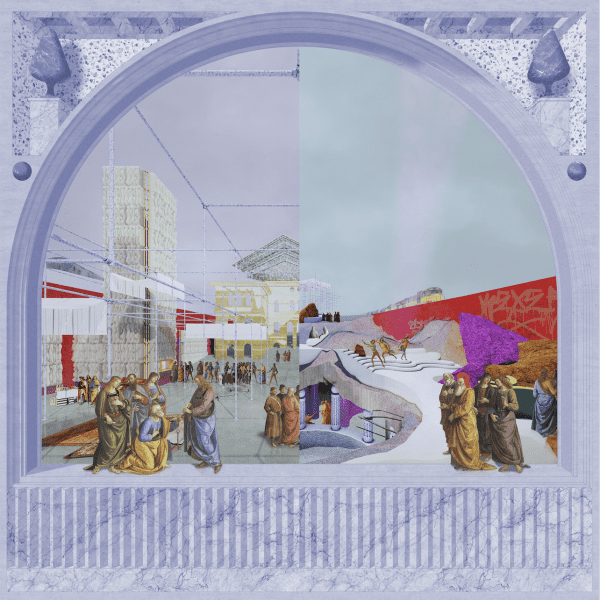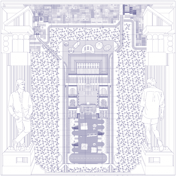 Here, current student Michael Cradock’s project looks at creating a queer space in Southwark that fosters a romantic, friendly, neighbourly, creative, collaborative atmosphere, focusing on sides aspects of queerness that are often overlooked.
