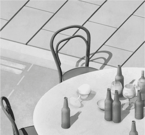 Experience 2: The street once dominated by the parked car becomes the scene of intoxication – a dinner party surrounded by pockets of nature.