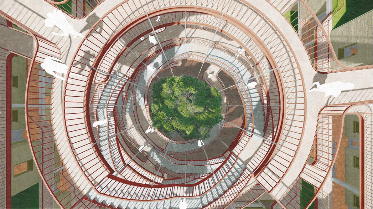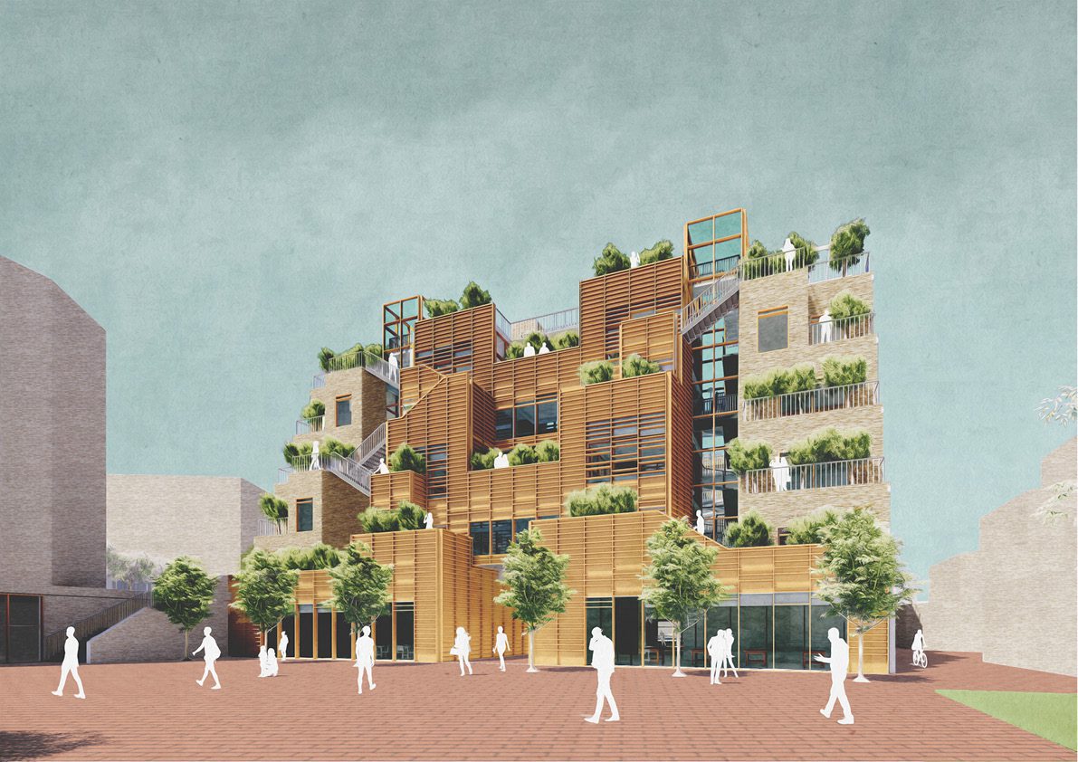 This project proposes a new typology of mixed-use development with the aim of supporting homelessness prevention in London..