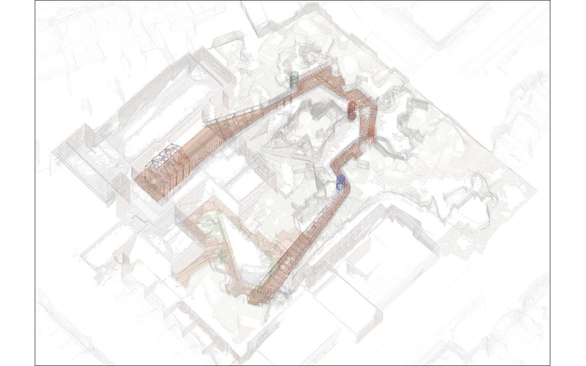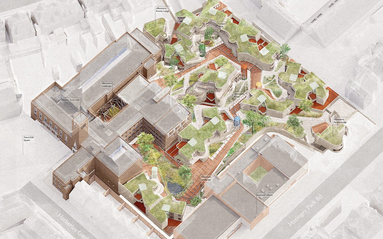 However, an architectural understanding of the spatial confusion associated with the disease presents an opportunity to radically reimagine a design approach for dementia spaces, prioritising quality of life and cognitive accessibility. This has been informed by the distinction between egocentric and allocentric spatial cognition: whereas a healthy brain takes egocentric, or point-of-view route-based spatial information, and forms an allocentric, or bird’s-eye cognitive map, studies of Alzheimer’s show this translation begins to break down, causing increased reliance on egocentric perception. This project asks how an architectural understanding of the effects of Alzheimer’s on spatial perception can be used to create better spaces for those living with the disease.