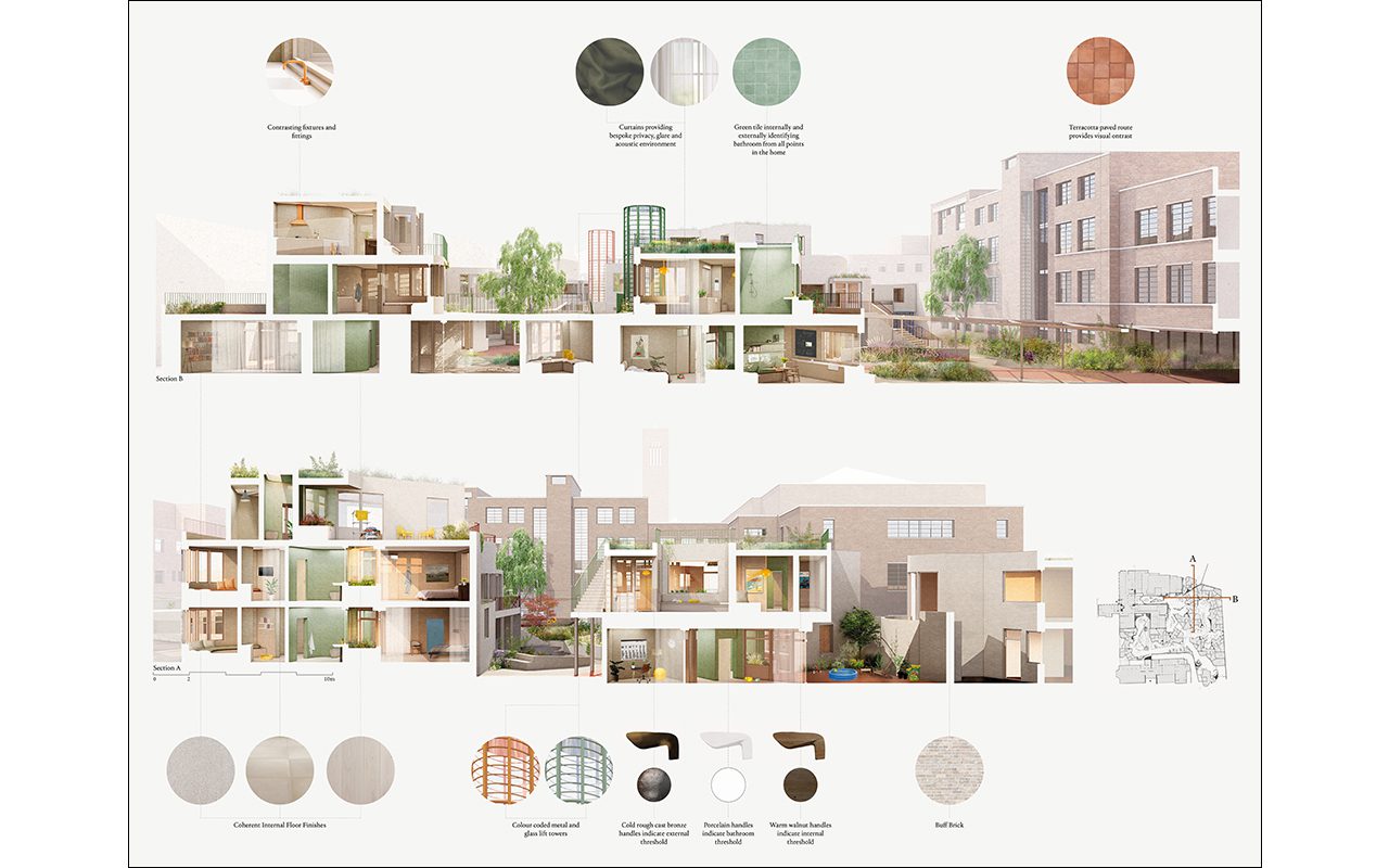 I don’t have any active plans to continue the project at the moment but I would definitely be keen to continue this research and explore its viability. I think the research and design methodology for greater cognitive accessibility could be applied to many more scenarios, including retrofitting existing buildings and urban planning. As the title of my project ‘Nobody Wants To Live In A Care Home’ not so subtly suggests, I believe there is a lot that can be done to improve design proposals in the care sector, and I hope to work in this area again in the future.