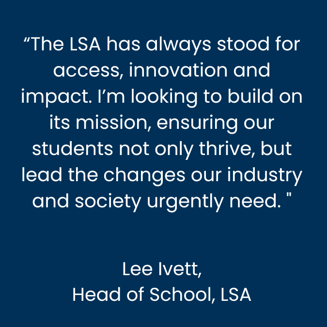 “The LSA, as part of the University of the Built Environment, is uniquely placed to advocate for that change, thanks to the innovative, imaginative and impactful programmes already being led by an exceptional team.”