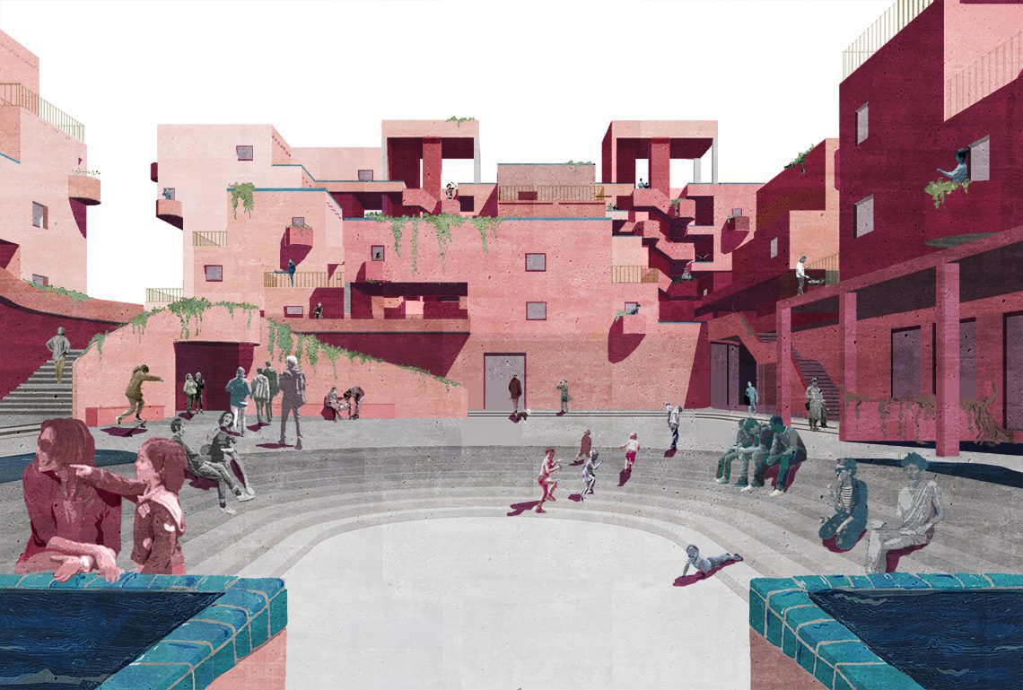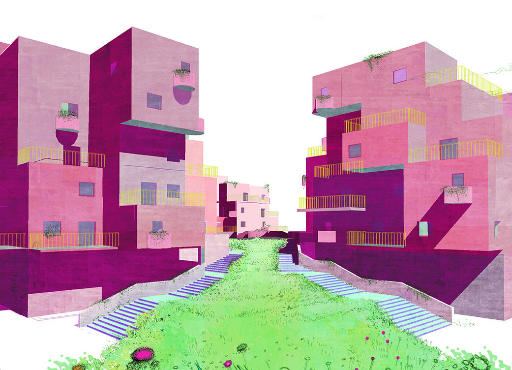 Walkway — along walkways and circulation spaces specific furniture is designed to be shared between different units to increase interaction and embrace everyday life.