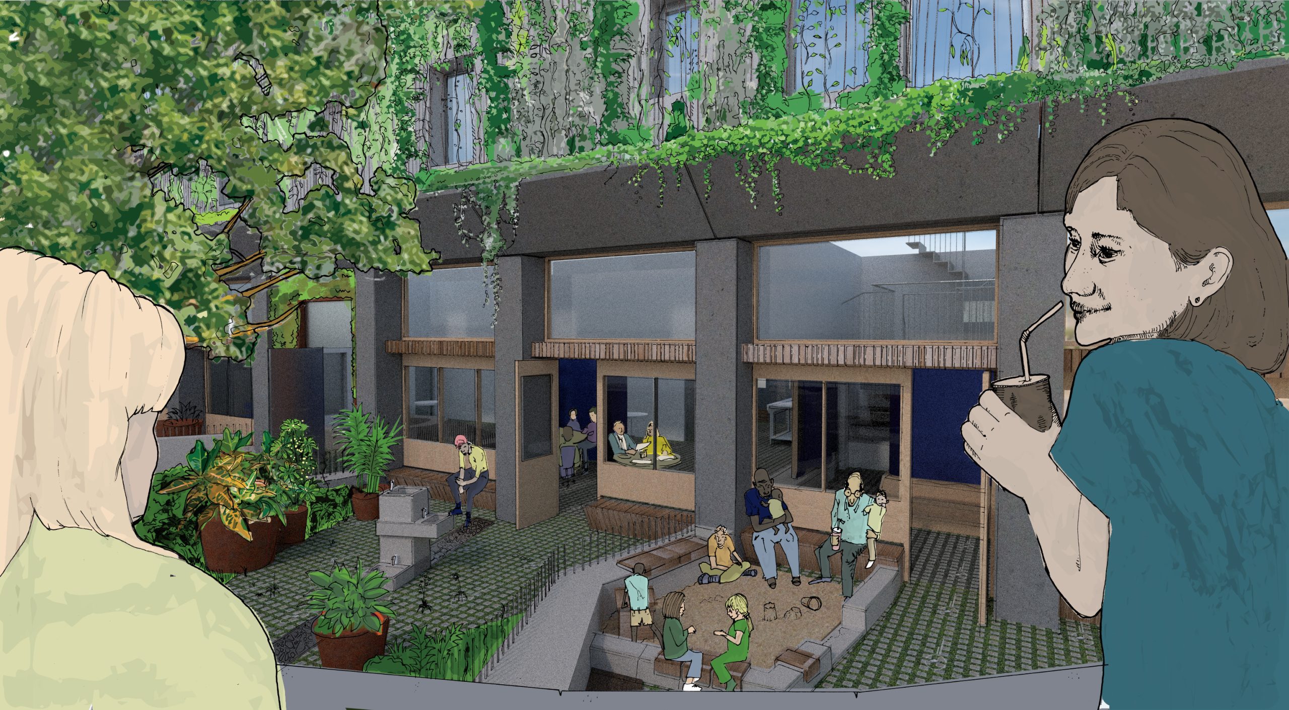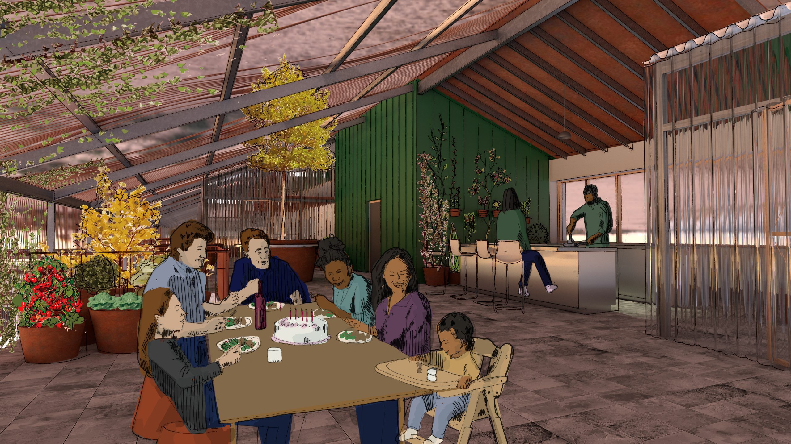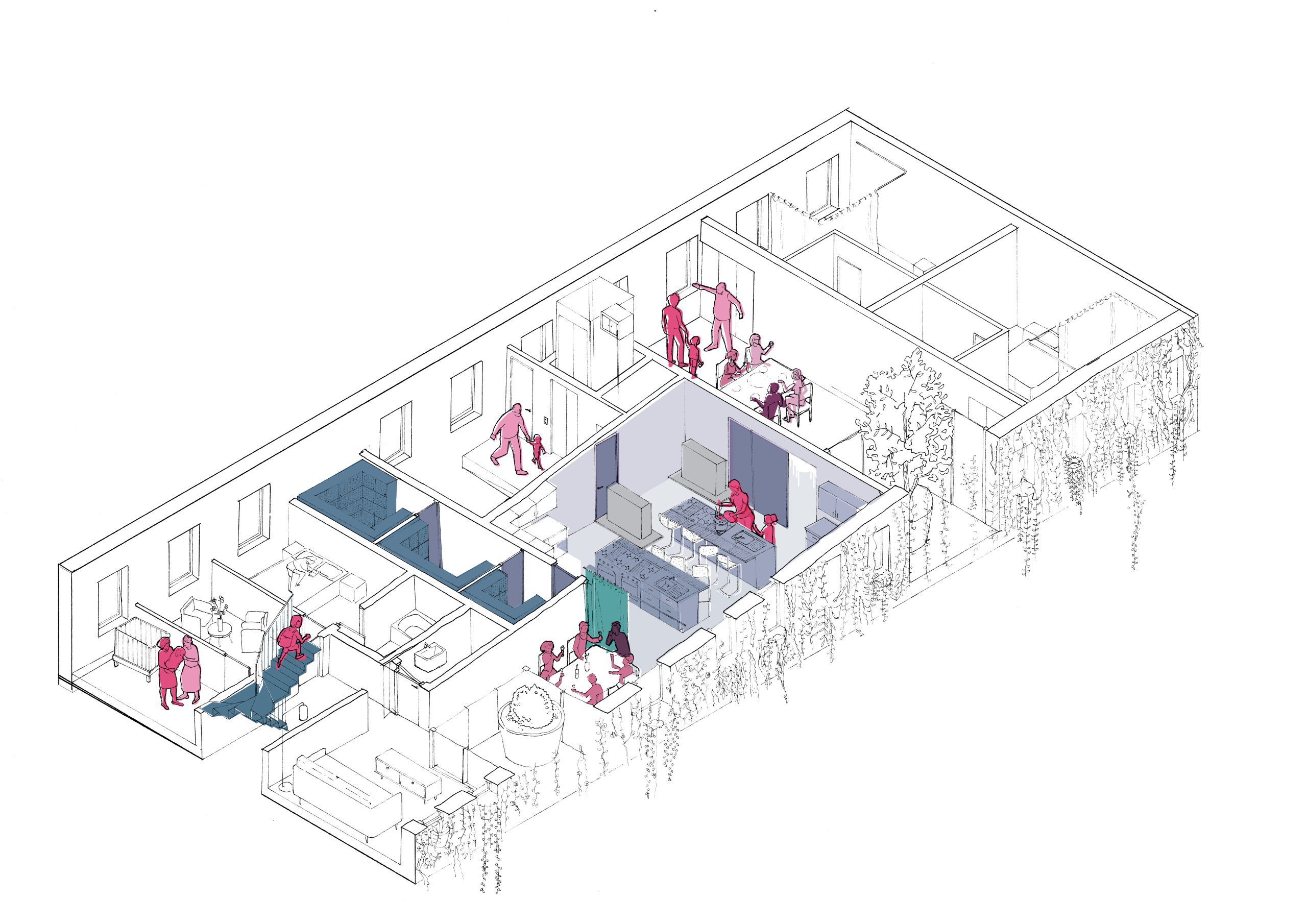 To create a holistic environment for informal care, through an architecture that provides opportunities for interaction via cooking, eating and growing.
