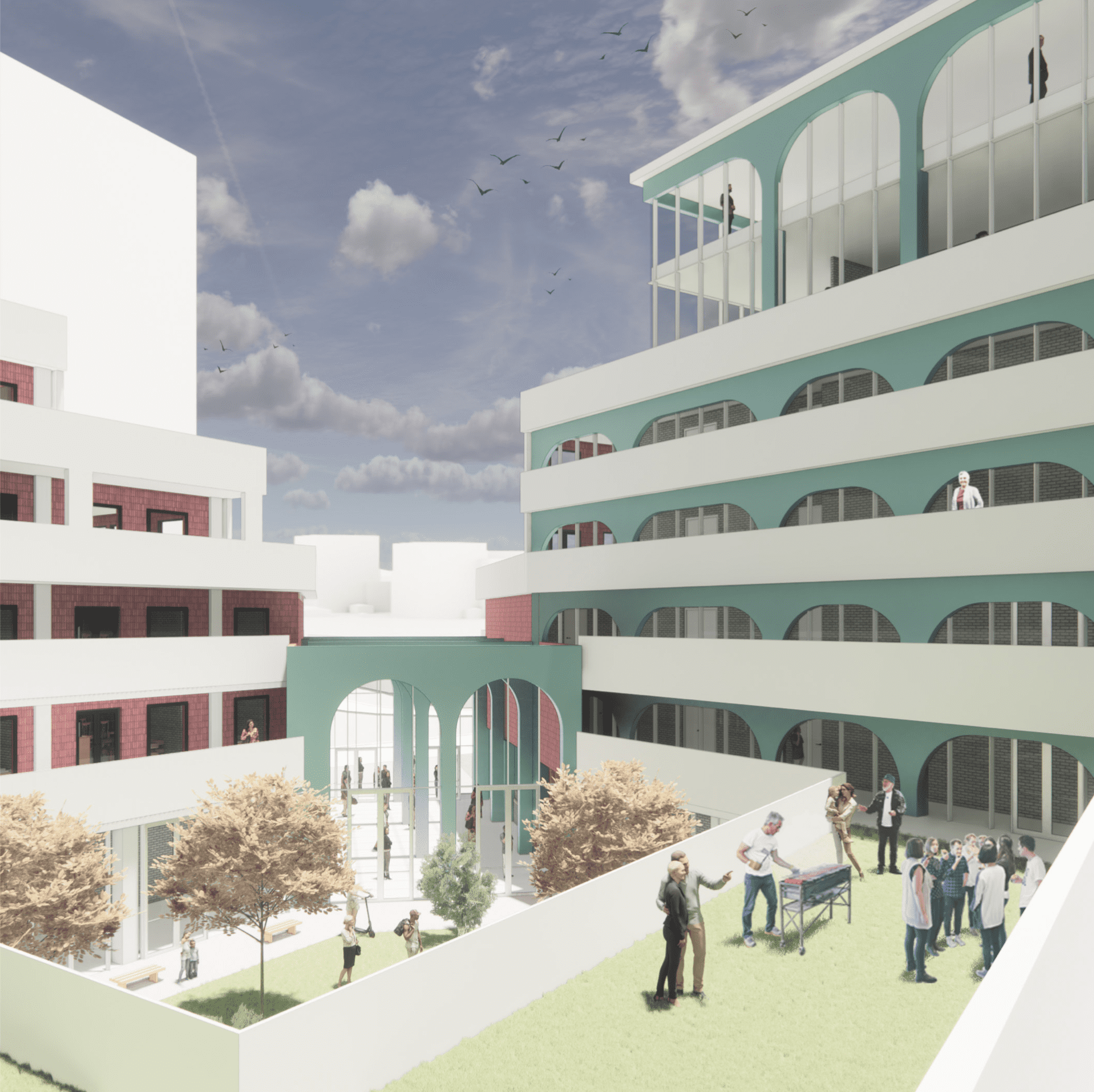 My objective is to create a space for the exchange of ideas, employment development and intergenerational cooperation. A space for rest and self-development for the most vulnerable members of the society and a place where the community can gather. That would be done by proposing a space for young people and the elderly to interact with the community by integrating youth support, social, co-working areas and housing for the elderly.