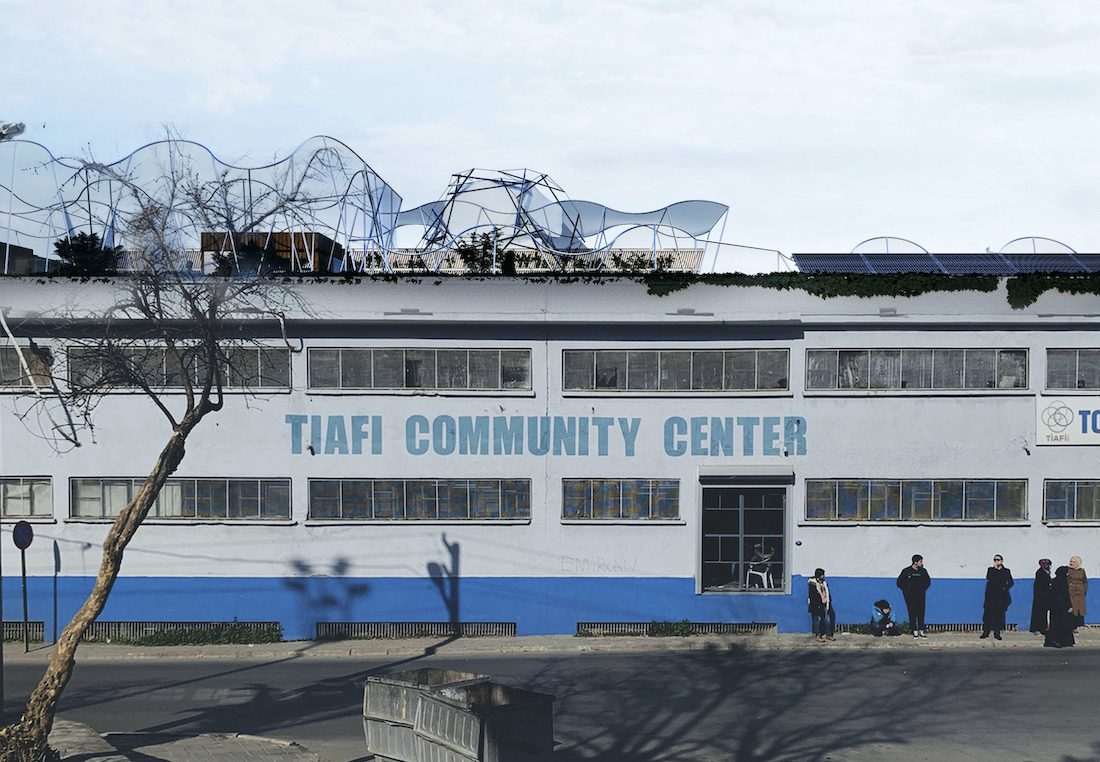 Currently we are building on the roof of the Tiafi community centre in Izmir, Turkey. Tiafi supports 5000 Syrians trapped in Izmir after the 2016 EU-Turkey deal. The families, mainly led by women, live in appalling conditions and are exploited by private landlords. Our rooftop “crown” project provides educational, therapy and sports spaces and a productive garden. We are now developing a network of projects for displaced people across Izmir and the farm camps that surround the city, creating a supportive urbanism that counters the increasing hostility towards refugees in Turkey. We are also talking with colleagues at the Kharkiv School of Architecture in Ukraine as part of the Ro3kVit initiative to develop ways in which participatory and co-design for and with IDPs (Internally Displaced People) can inform long-term reconstruction.