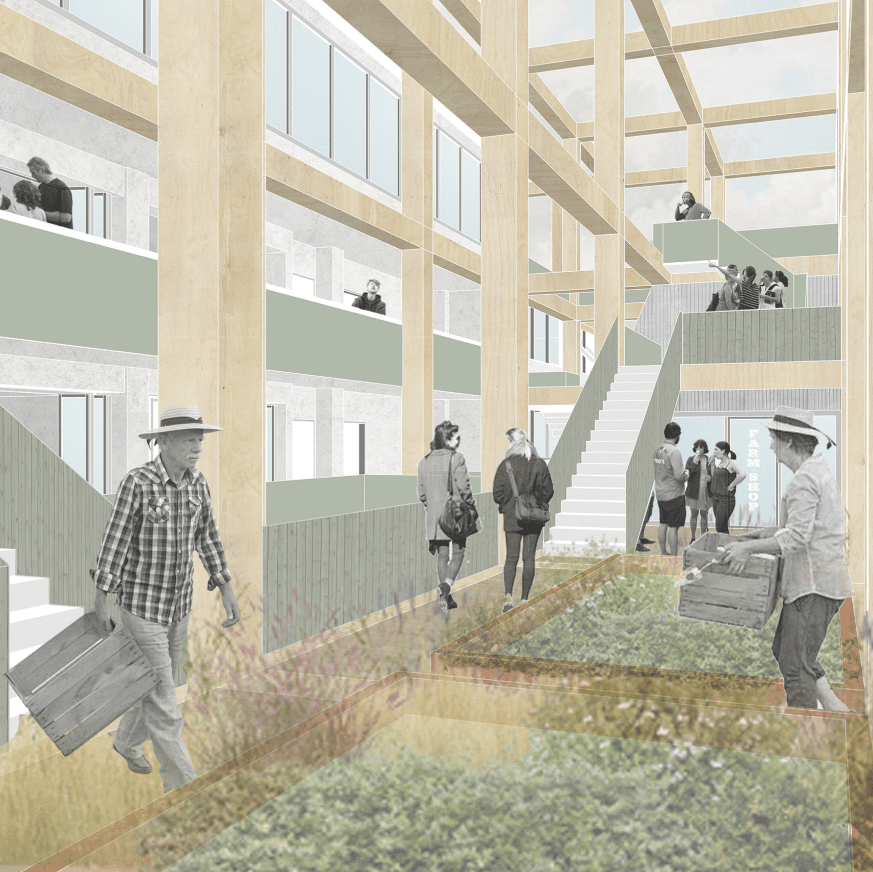 By treating the building as much of a client as its owners, a proactive retrofit of the existing building will improve the health of the overall building and provide better working conditions for the users. An additional CLT structure will then wrap the existing building to provide new spaces for social interaction, connections to nature and new working environments.