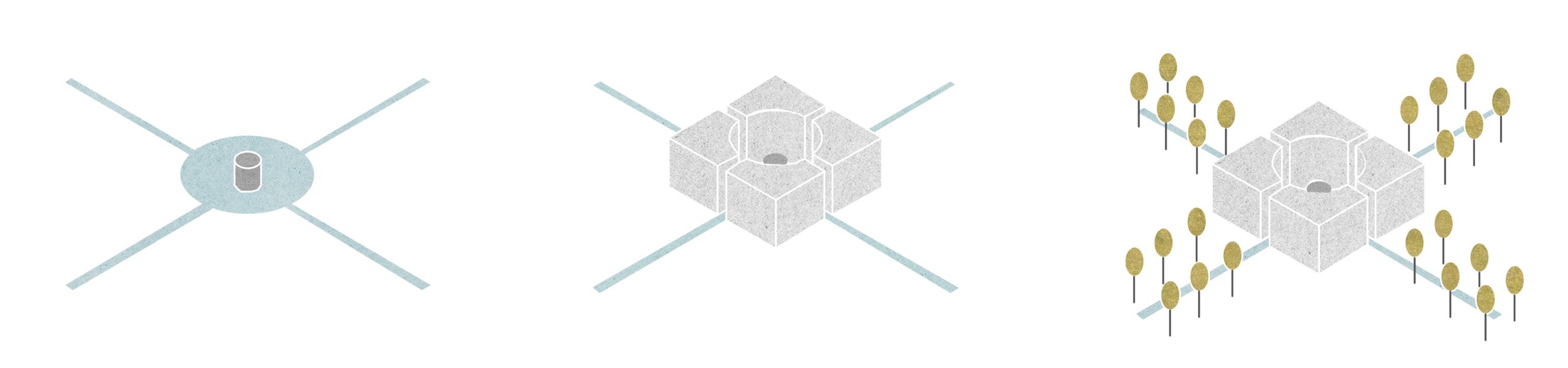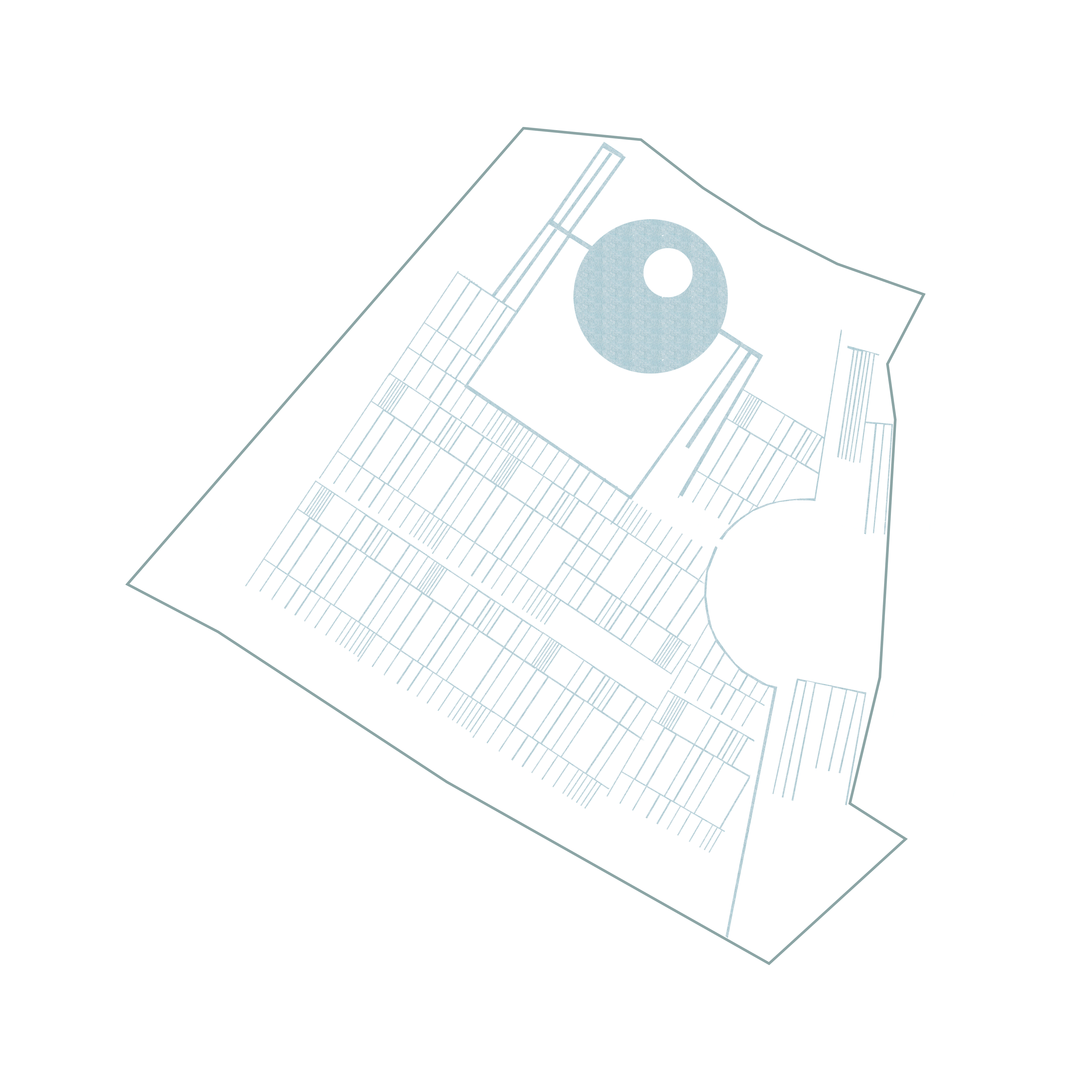 A series of water channels will take visitors on a journey to the building which is simple in form from the outside, but an overgrown forest on the inside. The building includes farewell spaces, wash rooms and courtyards which wrap around a flooded gas holder that distributes water to the rest of the site.