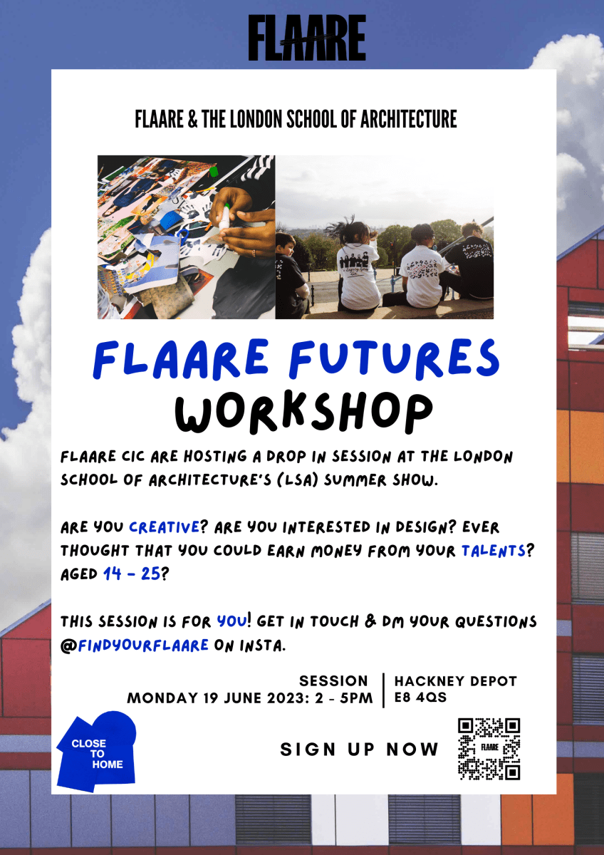 On Monday 19 June, as part of our LSA Summer Show and Part 0 programme, we are hosting an event with FLAARE CIC.This session is aimed at 14-25 year olds interested in a creative career.