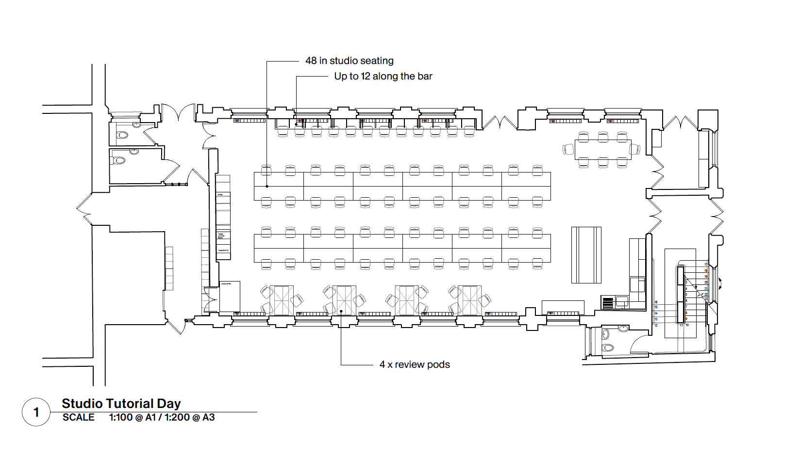 Layout- 48 seats around central tables