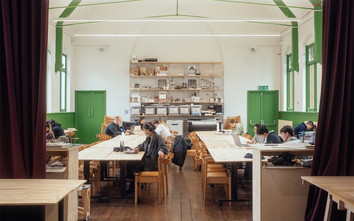 On the first floor, a smaller seminar room serves as a quiet space for students, teaching space for our Part 0 outreach programmes for local young people, and for our in-person Part 4 programmes aimed at professional practice.